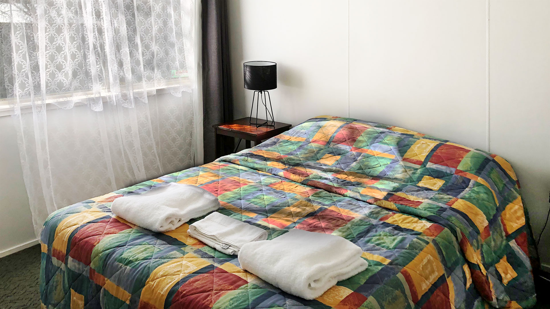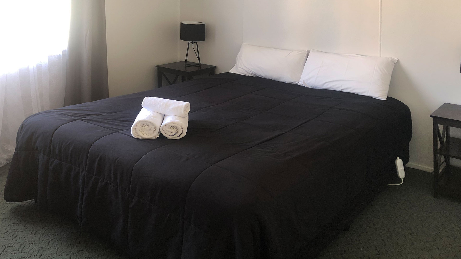 Double bed with bedding, cooking facilities, reverse cycle air conditioning, flat screen TV, close to amenities.