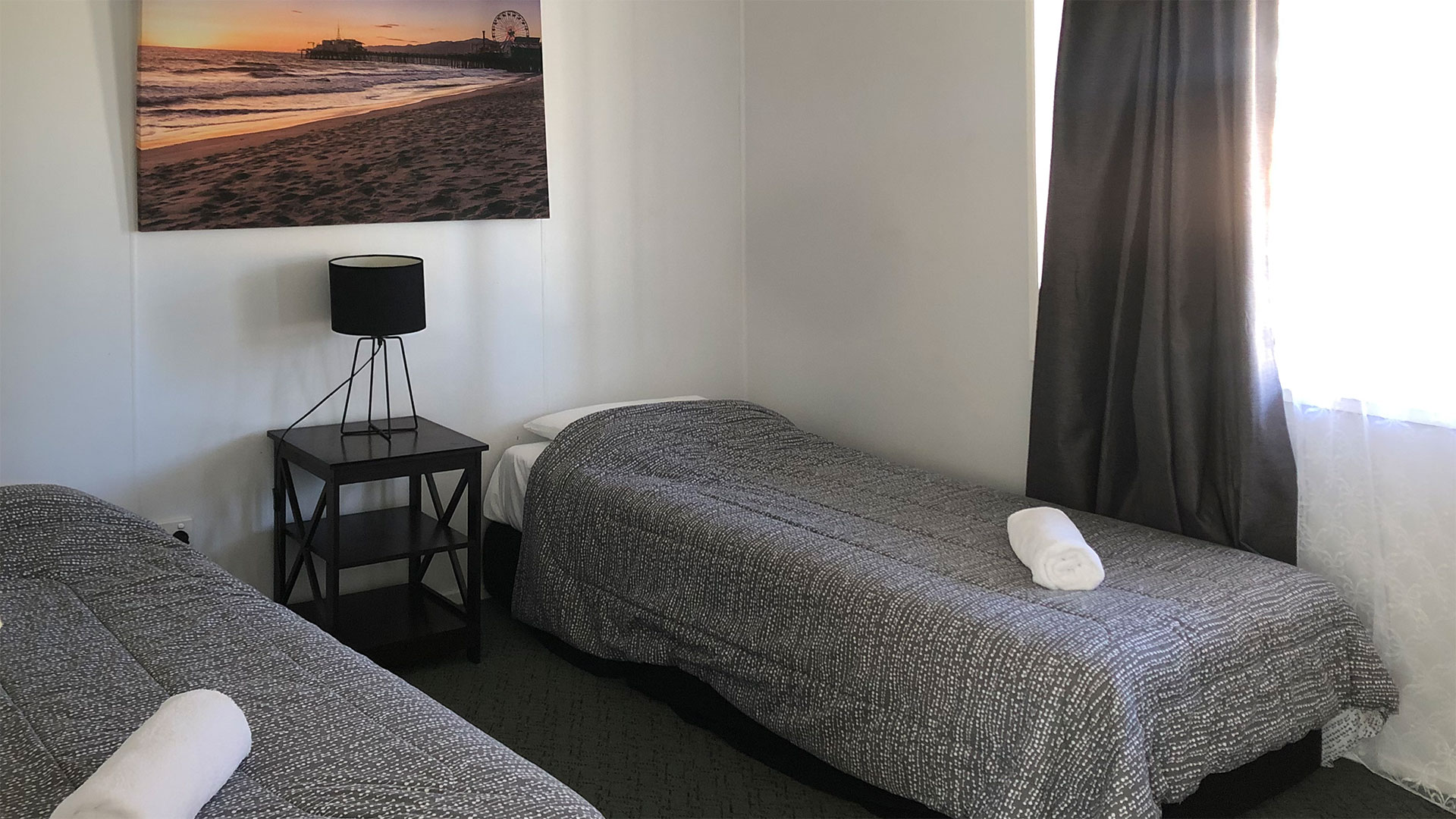 Suited for the worker, small family or a catch up with friends. 4 separate rooms under the 1 roof. Enter through the main door into a large central lounge/dinning and kitchen area. From here you gain access to your motel style room with ensuite. 1 room has a queen bed whilst the other rooms have 2 single beds.